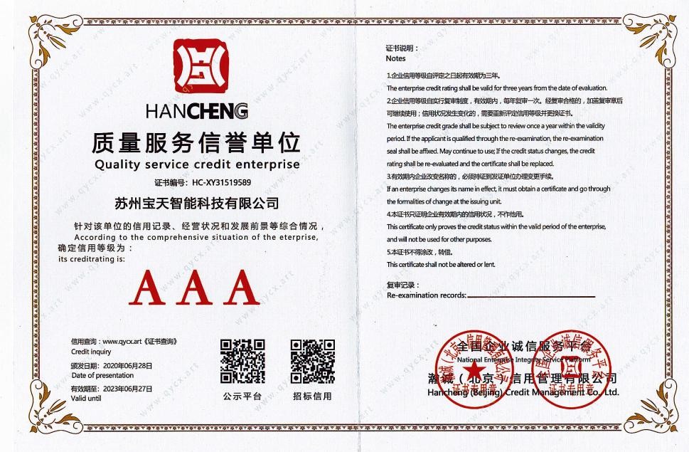 AAA 級(jí)服務(wù)質(zhì)量信譽(yù)單位